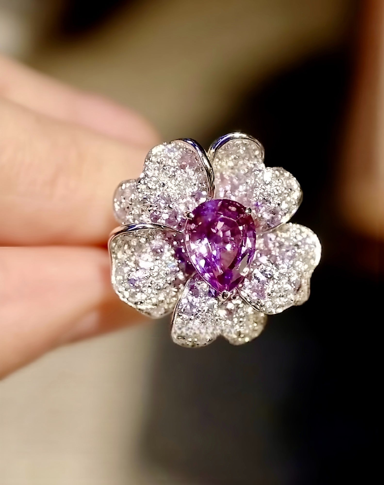 Amirelle Ring – Lab-Grown Lavender Sapphire & Diamond Blossom Ring
