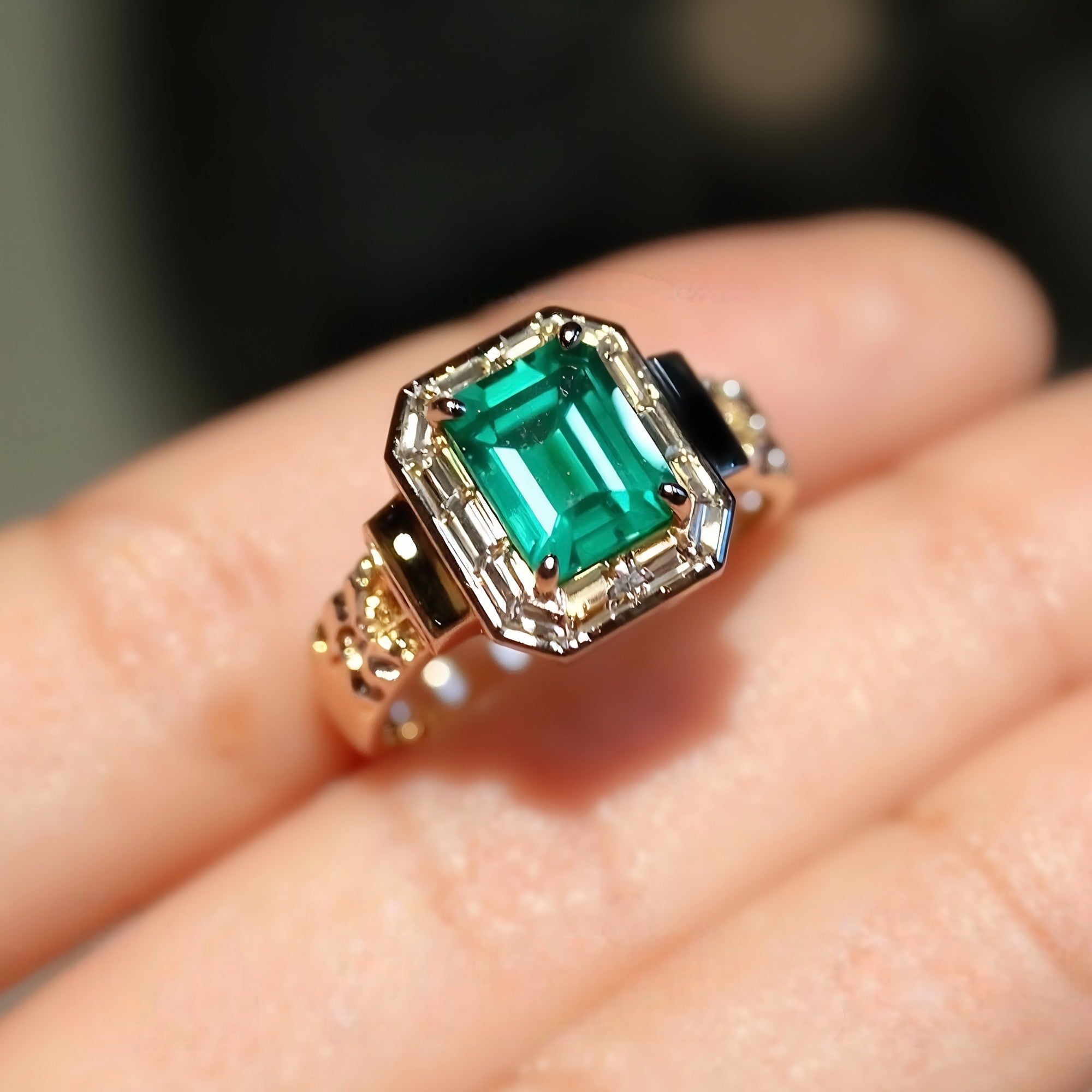 Art Deco Lab Emerald Baguette Halo Ring – 1.5ct Statement Gemstone
