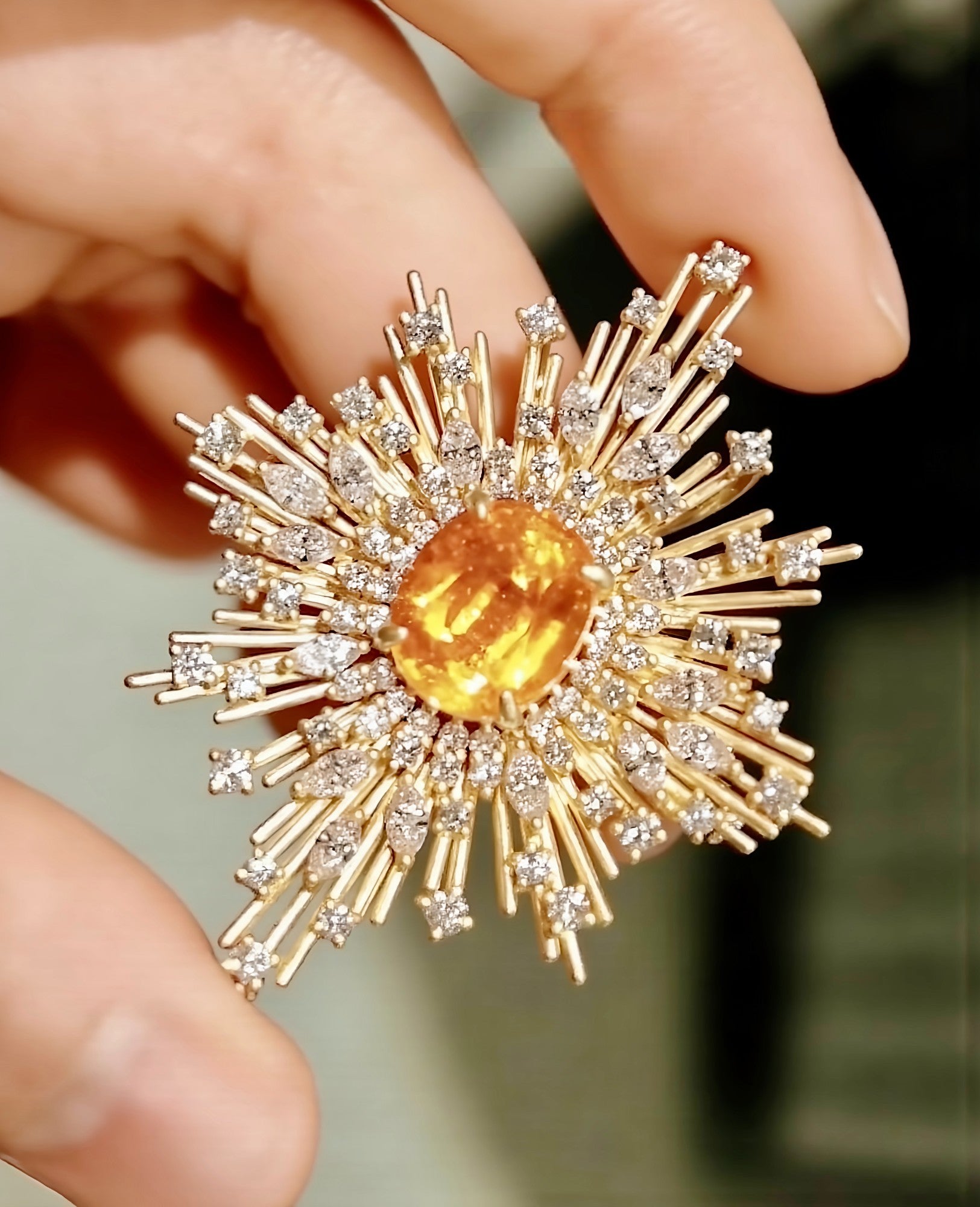Solenaire Brooch-Pendant – 8ct Fanta Garnet & Lab Diamond Starburst