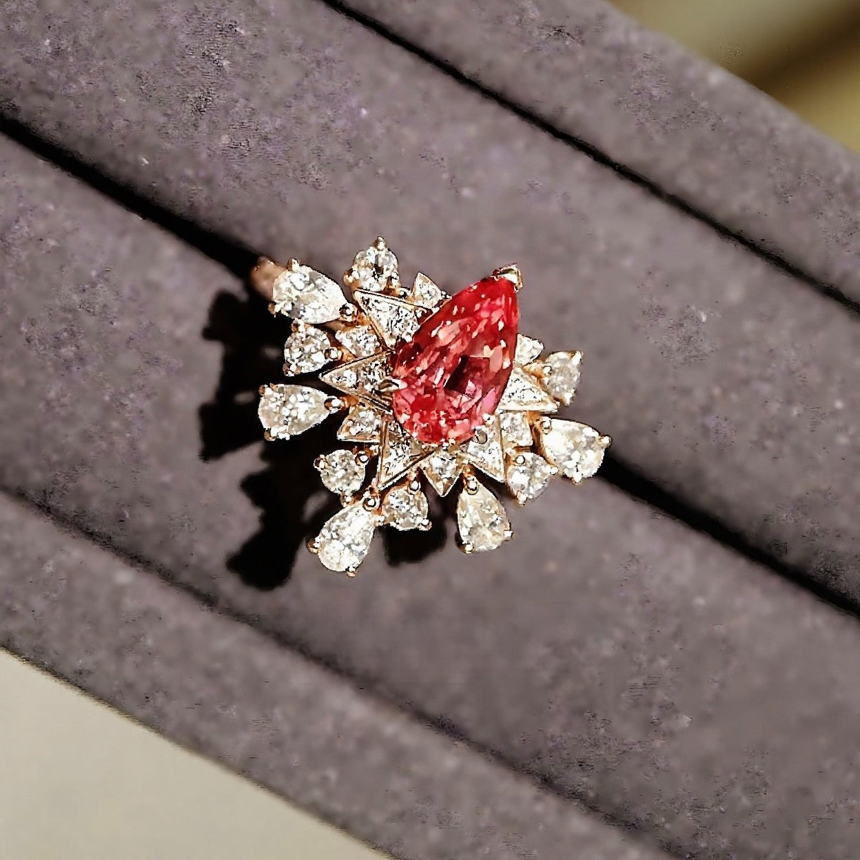 Taislyn Ring – 1.5ct Lab-Grown Padparadscha Sapphire Diamond Halo Ring